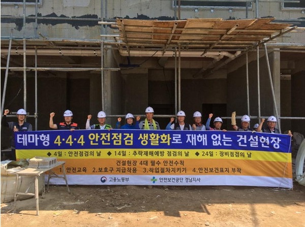 안전보건공단 경남지사(지사장 이진우)는 17일 거제 문동동 지평토건㈜ 장기 공공임대 주택 건설공사현장에서 추락예방의 날 캠페인을 했다. 이진우 안전보건공단 경남지사장은 "건설현장 사고를 줄이려면 시스템 비계 활용도를 높여야 한다"고 강조했다.