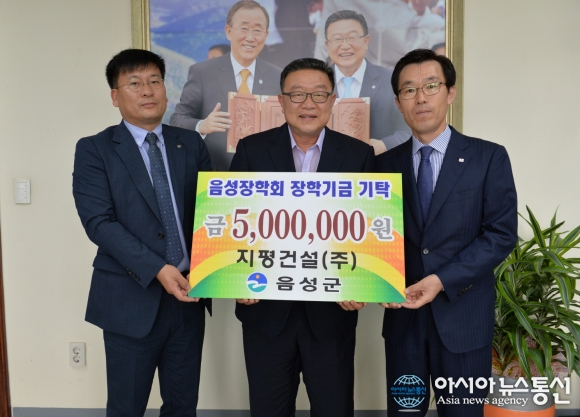 충북 음성군장학회(이사장 이필용)는 24일 지평건설(주) 송성섭 대표가 음성군청을 방문해 장학기금 500만원을 기탁했다고 25일 밝혔다.